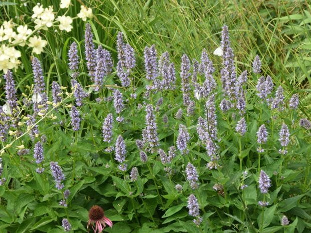 Agastache rugosum, die hüfthohe Asiatische Duftnessel oder Blaunessel kommt aus Südostasien und wird auch Korea-Minze genannt. Sie blüht von Juli bis September. Besonders schön ist ‚Blue Fortune‘.