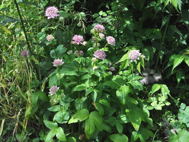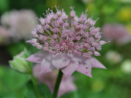 Astrantia maxima die kniehohe Kaukasus-Sterndolde oder Riesen-Sterndolde kommt aus dem Kaukasus. Dort wächst sie auf feuchten Bergwiesen und in Bergwäldern. Im Garten möchte sie Halbschatten und einen feuchten Boden ohne Staunässe. Sie blüht im Juni/Juli. Es gibt viele Sorten von weiß über rosa bis rot. A. maxima ist der A. major ähnlich. Ich muss sie nochmal bestimmen.