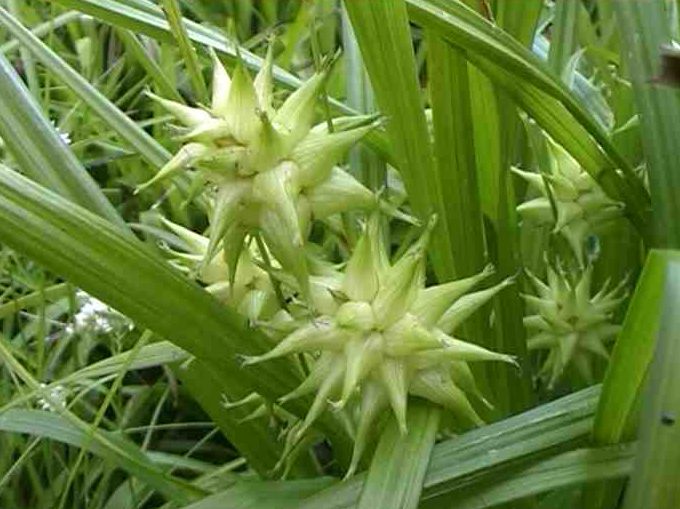 Carex grayi, die Morgensternsegge aus dem westlichen Nordamerika, ist nach der Form ihrer Fruchtstände benannt, die einem mittelalterlichen Kriegswerkzeug, dem Morgenstern ähneln.