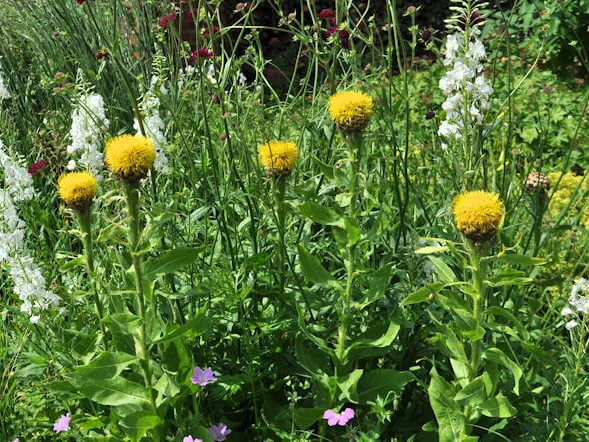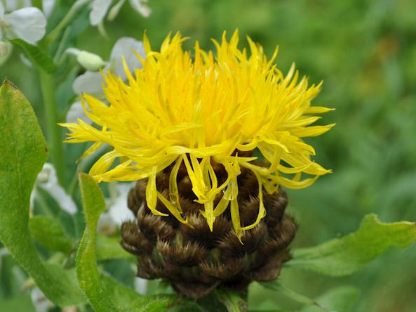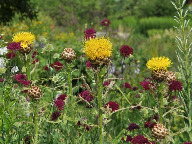 Centaurea macrocephala, die brusthohe Riesen-Flockenblume kommt aus Gebirgen der Nordost-Türkei, Transkaukasiens und aus dem Nordwest-Iran. Sie blüht im Juli.