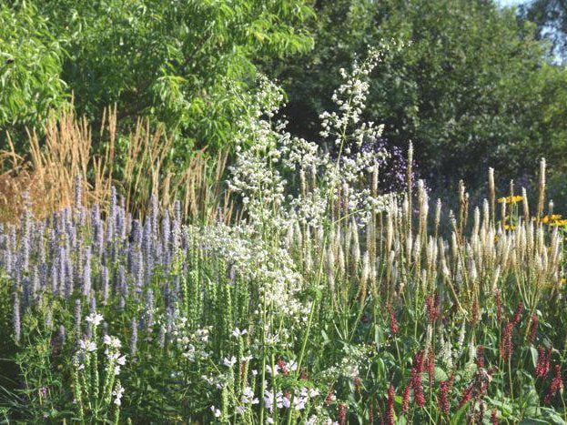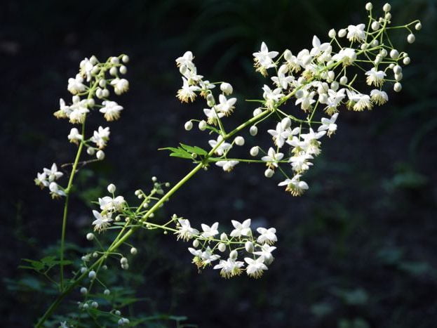 Thalictrum delavayi, die mannshohe Chinesische Wiesenraute kommt aus West-China und Tibet. Es gibt Sorten, z. B. ‚Album‘ und ‚Splendide White‘.