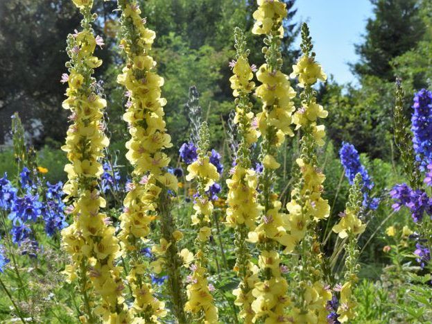 Verbascum olympicum, die mannshohe Kandelaber-Königskerze kommt aus Mittel-Europa. Sie blüht von Juni bis September.